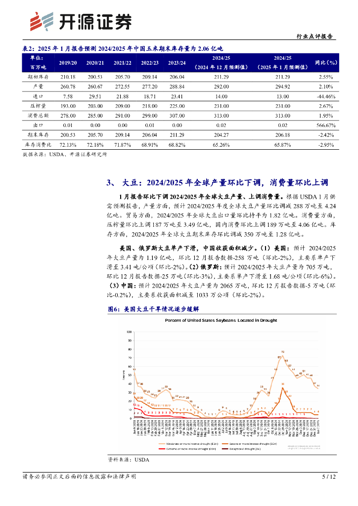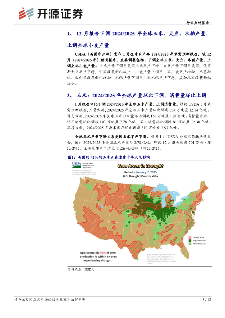 开源证券:农林牧渔行业点评报告:1月USDA农产品报告下调全球玉米、大豆、水稻产量,上调全球小麦产量.pdf