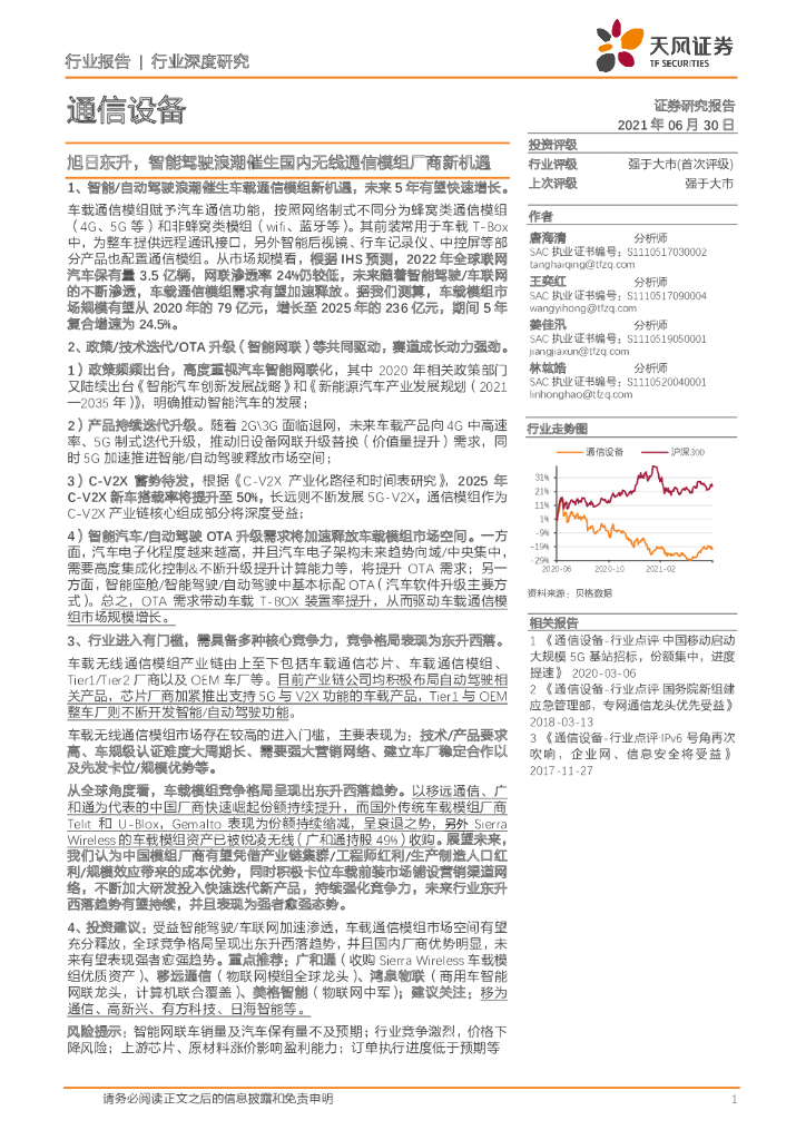 天风证券:通信设备行业深度研究:旭日东升,智能驾驶浪潮催生国内无线通信模组厂商新机遇.pdf