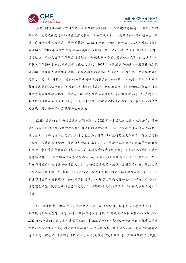 CMF:中国宏观经济分析与预测报告(2022-2023)大调整中温和复苏的中国宏观经济.pdf