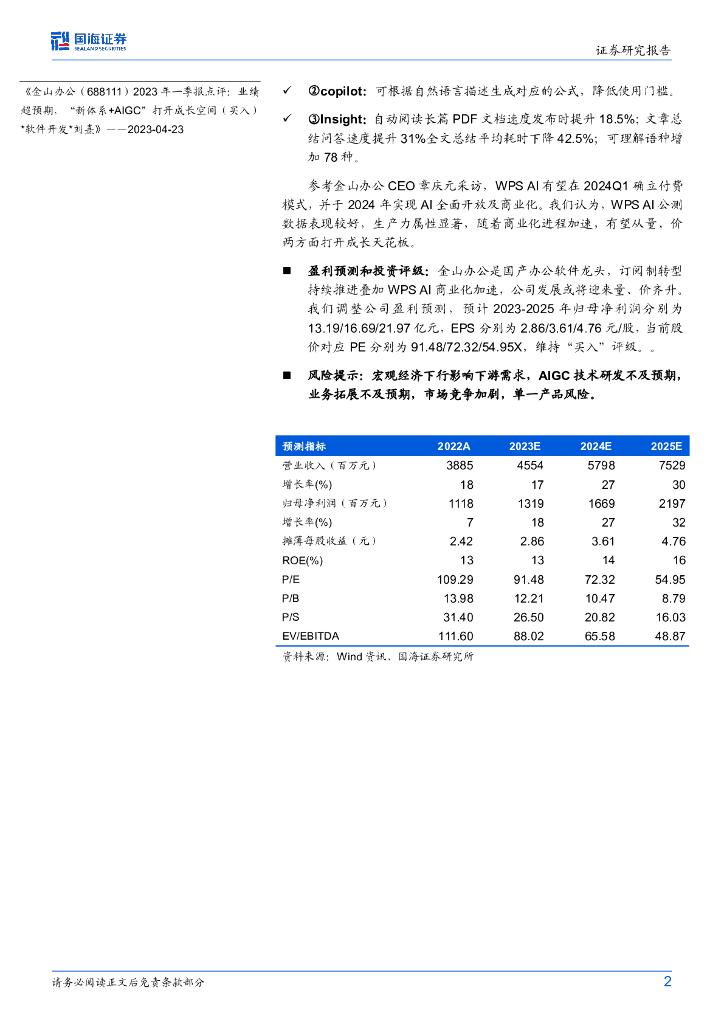 国海证券:金山办公(688111)-2023年业绩快报点评:扣非业绩增速35%,WPS AI表现亮眼.pdf