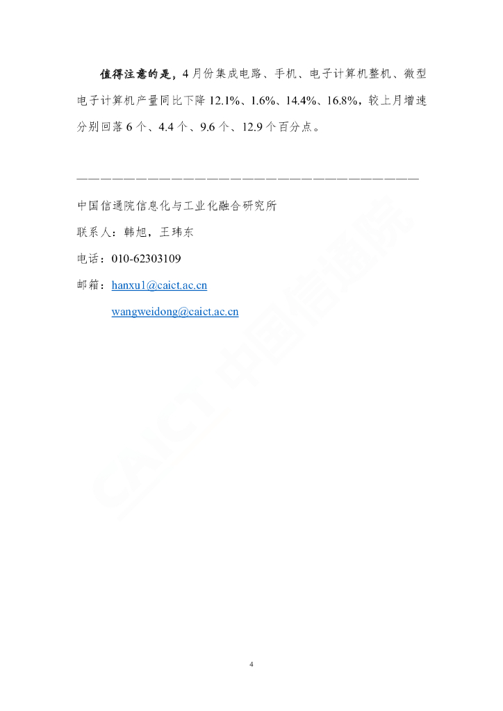中国信通院:2022年4月电子行业运行数据报告: 电子制造业成为疫情下工业经济增长的重要支柱.pdf