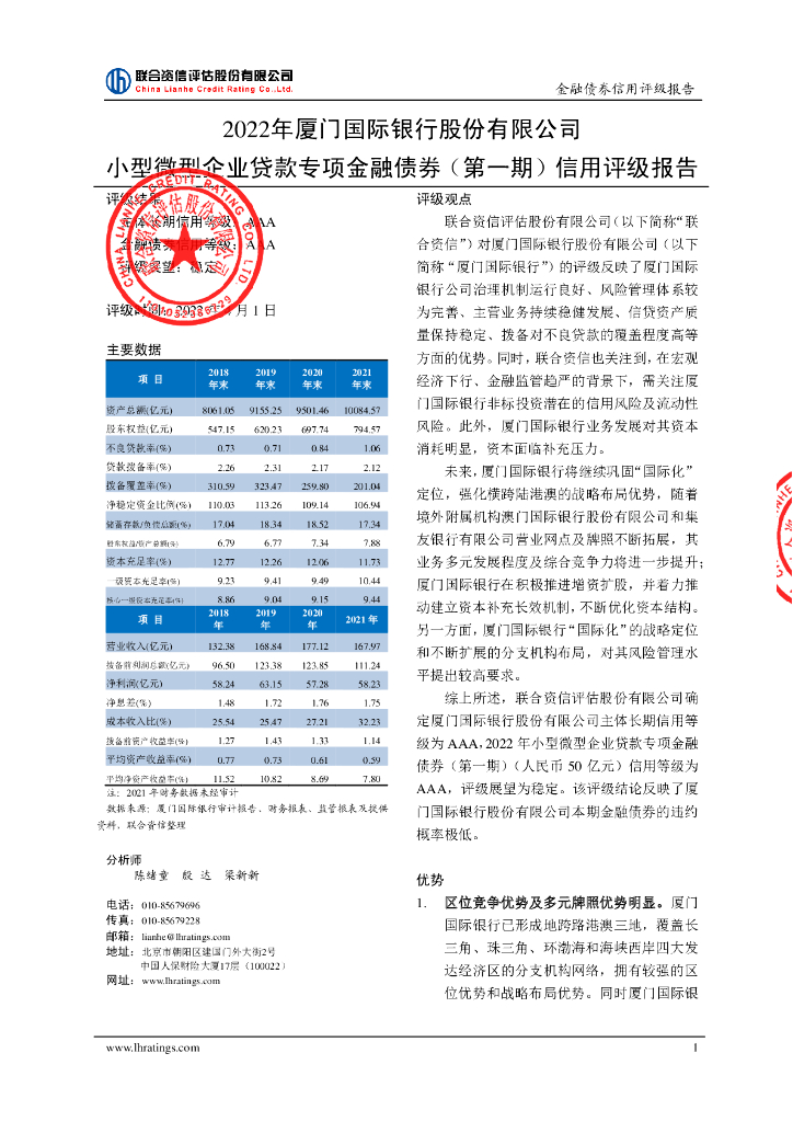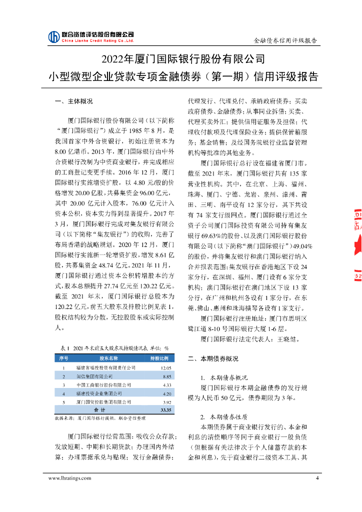 联合资信:2022年厦门国际银行股份有限公司小型微型企业贷款专项金融债券(第一期)信用评级报告.pdf