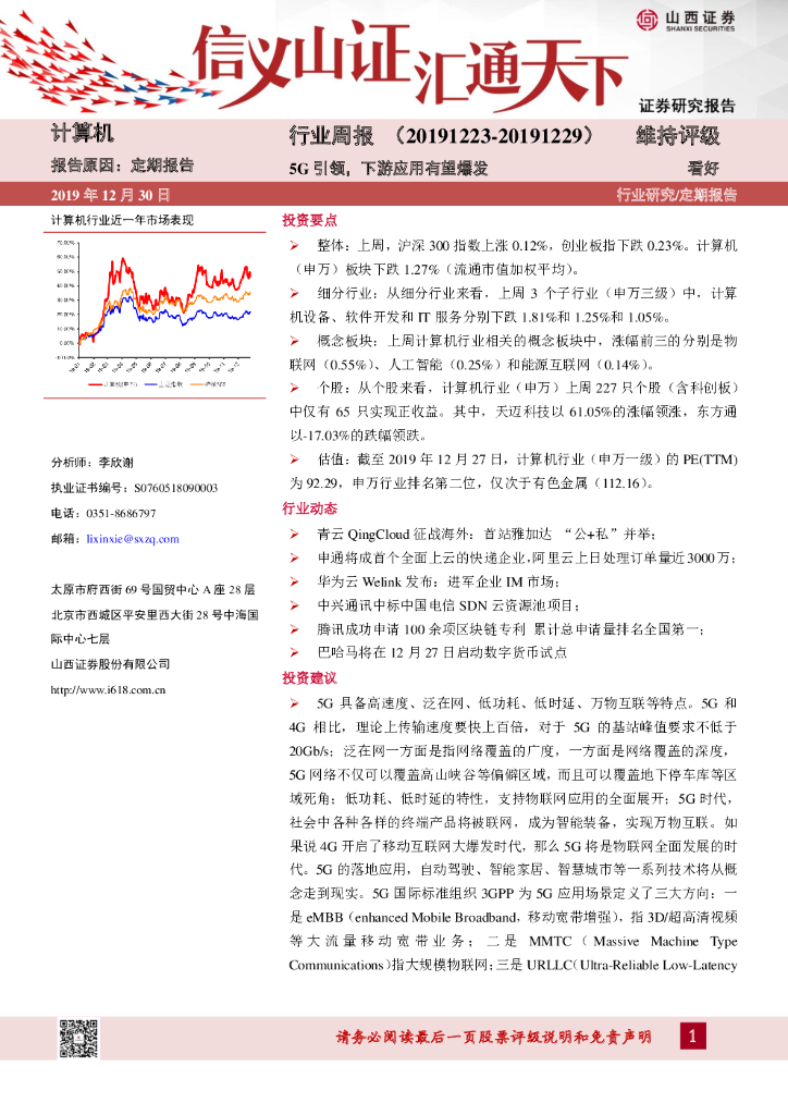 山西证券:计算机行业周报:5G引领,下游应用有望爆发.pdf