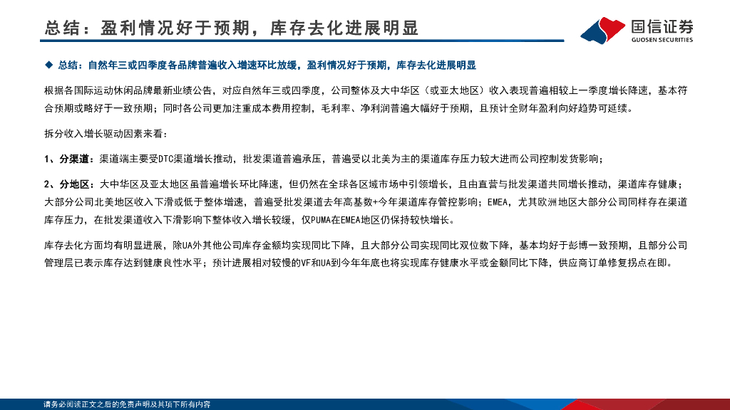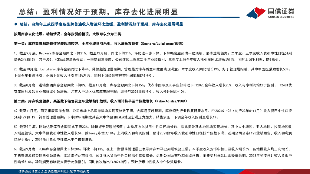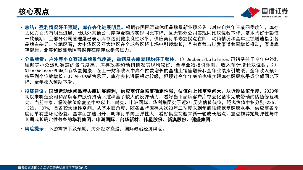 国信证券:国际品牌财报总结专题-品牌库存去化进展明显,看好供应商订单恢复确定性.pdf
