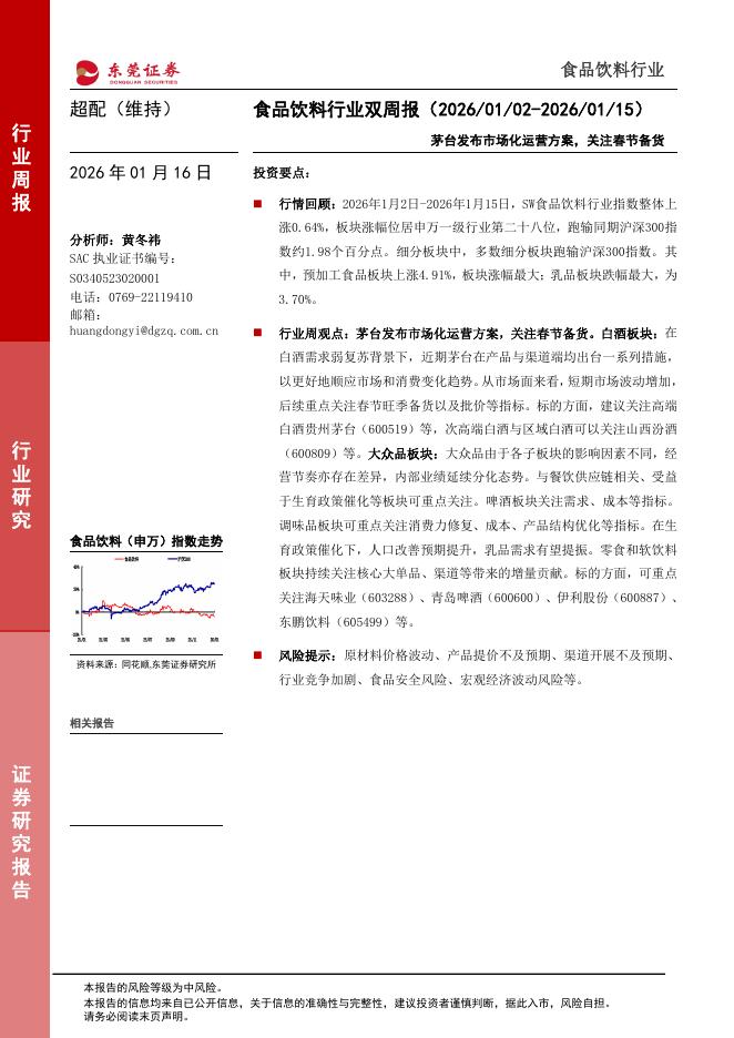 东莞证券:食品饮料行业双周报:茅台发布市场化运营方案,关注春节备货.pdf