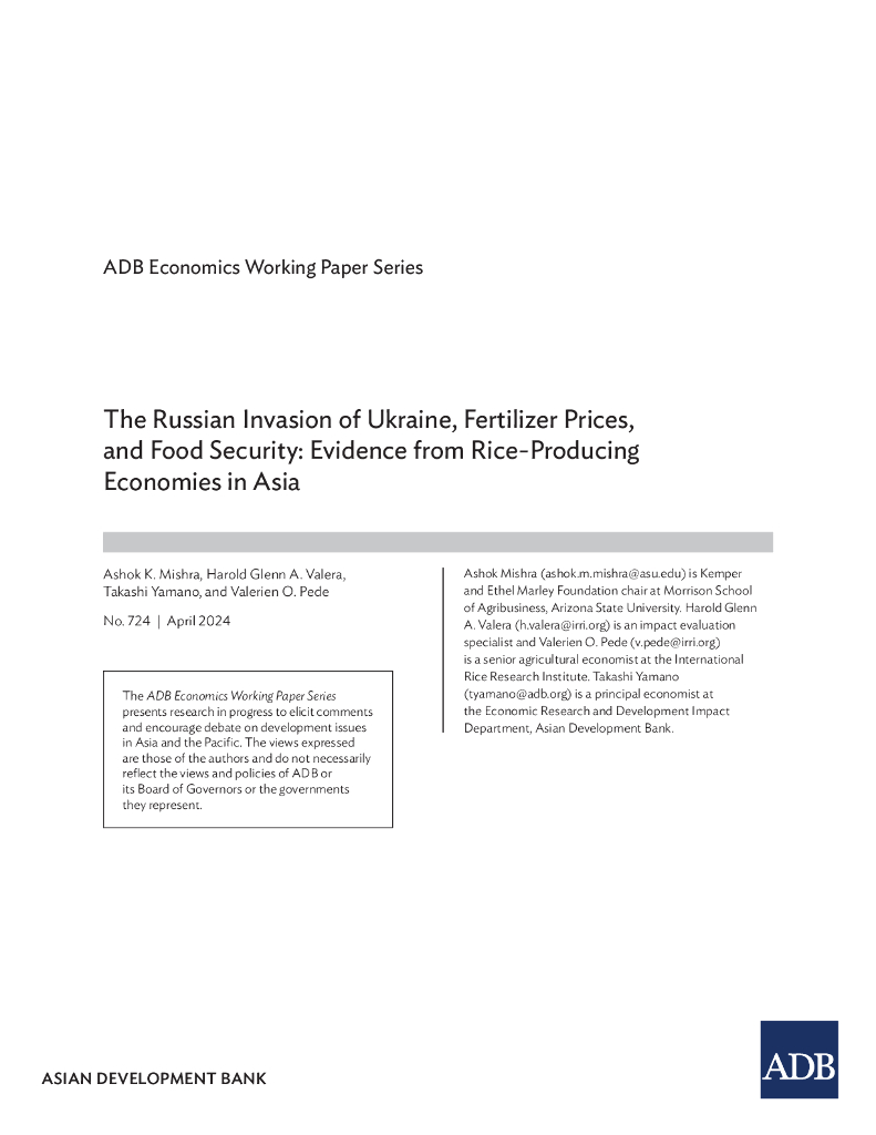 ADB亚洲开发银行:2024年俄乌战争、化肥价格和粮食安全:来自亚洲稻米生产经济体的证据(英文版).pdf