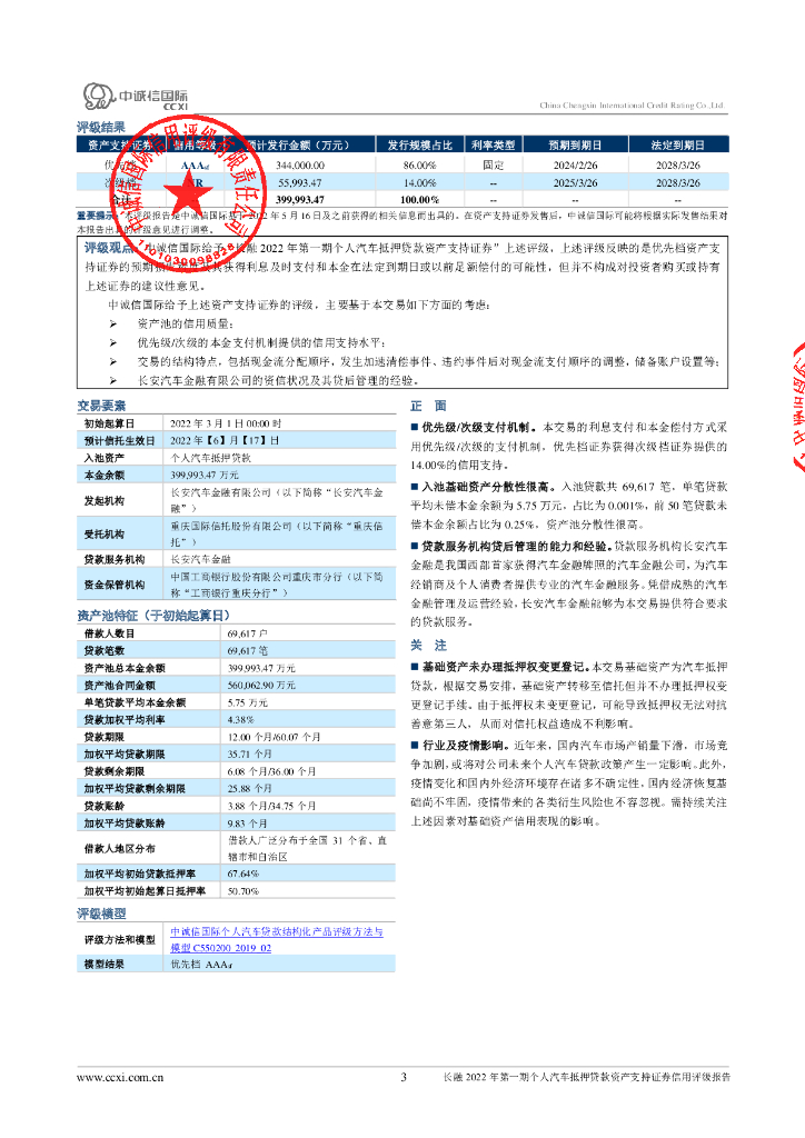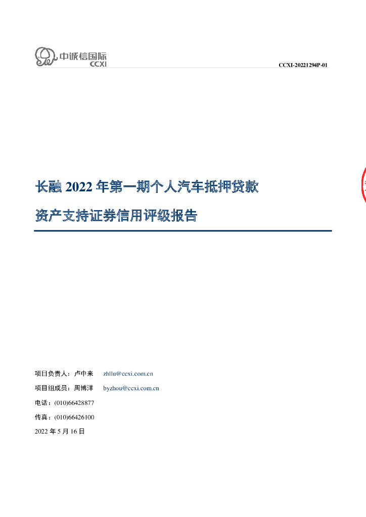 中诚信:长融2022年第一期个人汽车抵押贷款资产支持证券信用评级报告-中诚信.pdf