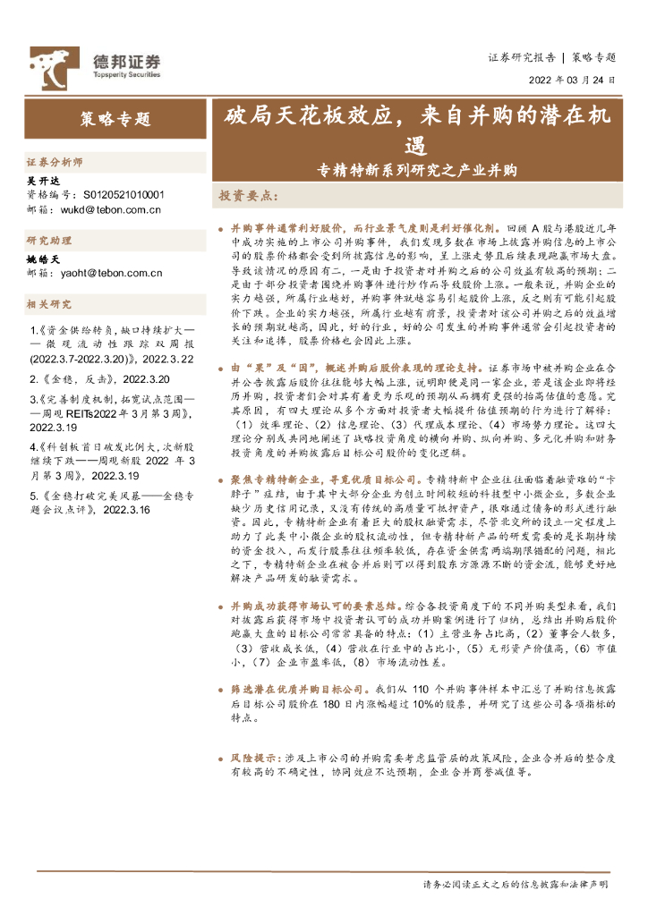 德邦证券:专精特新系列研究之产业并购:破局天花板效应,来自并购的潜在机遇.pdf