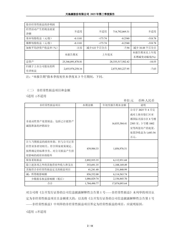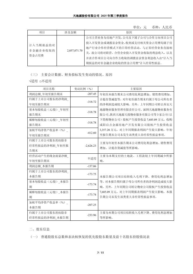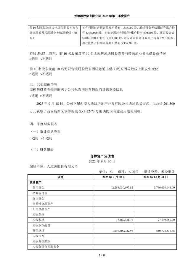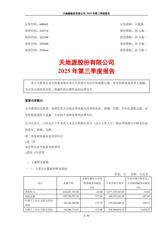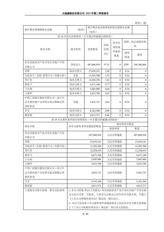 600665-天地源:天地源股份有限公司2025年第三季度报告.pdf