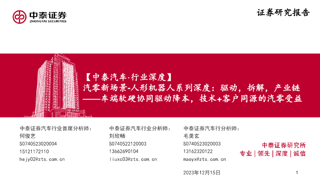 中泰证券:汽零新场景-人形机器人系列深度:驱动,拆解,产业链——车端软硬协同驱动降本,技术 客户同源的汽零受益.pdf