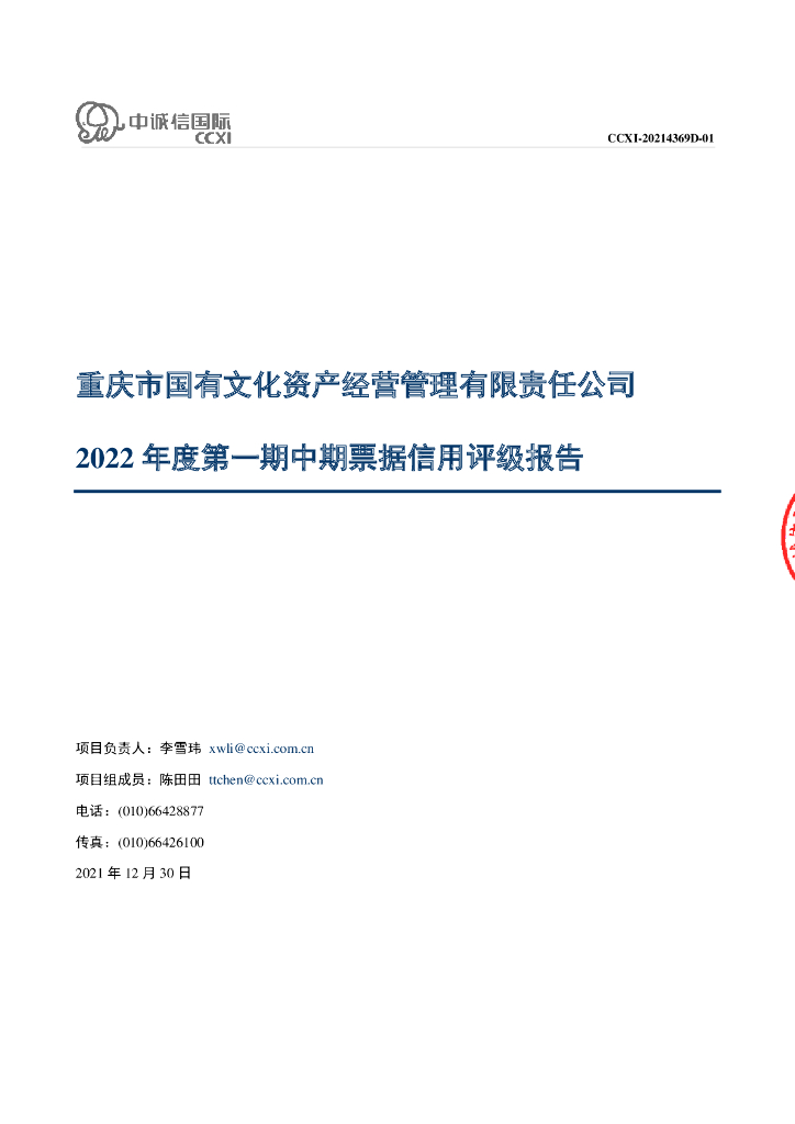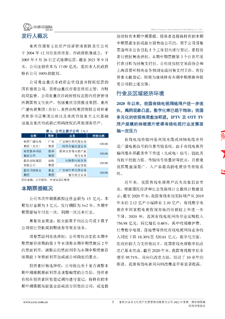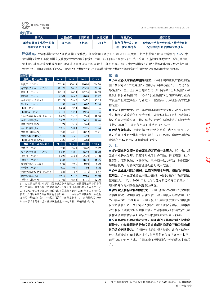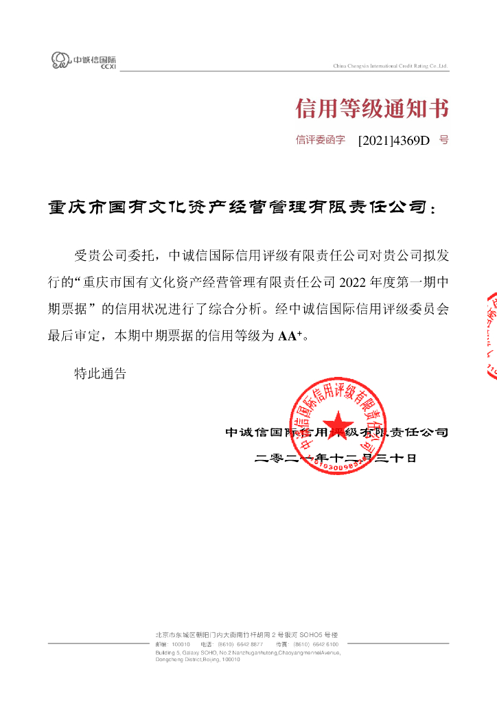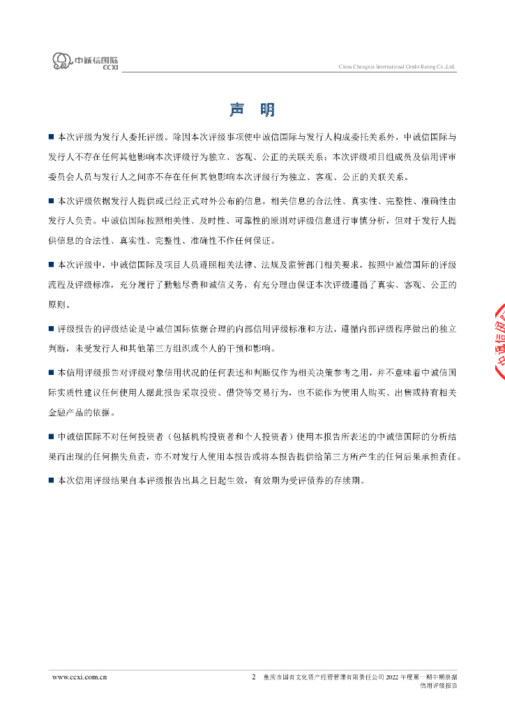 中诚信:重庆市国有文化资产经营管理有限责任公司2022年度第一期中期票据信用评级报告.pdf