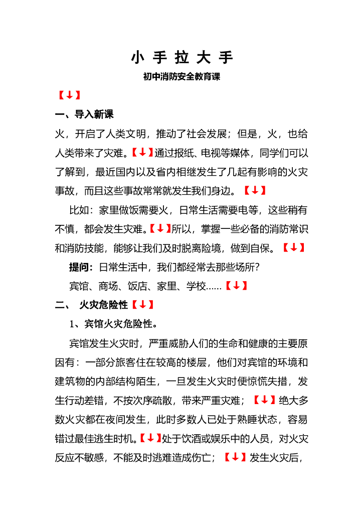 辽宁大连第十四中学《小手拉大手》消防安全教育课教案.doc