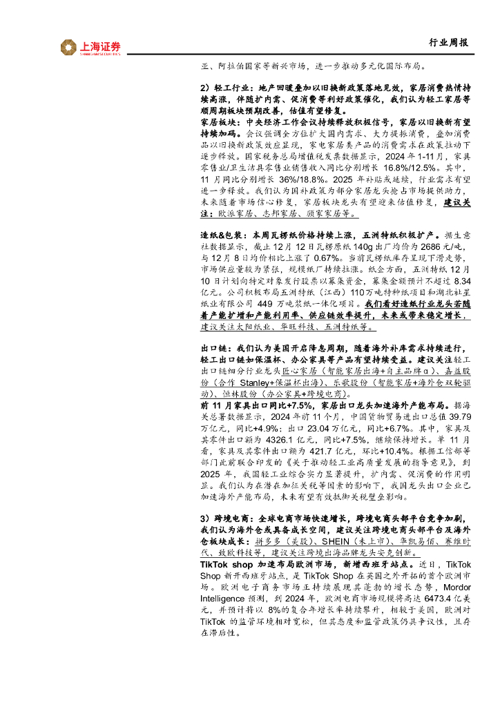 上海证券:轻工纺服行业周报:11月我国纺服出口同增6.8%,关注政策提振内需消费.pdf