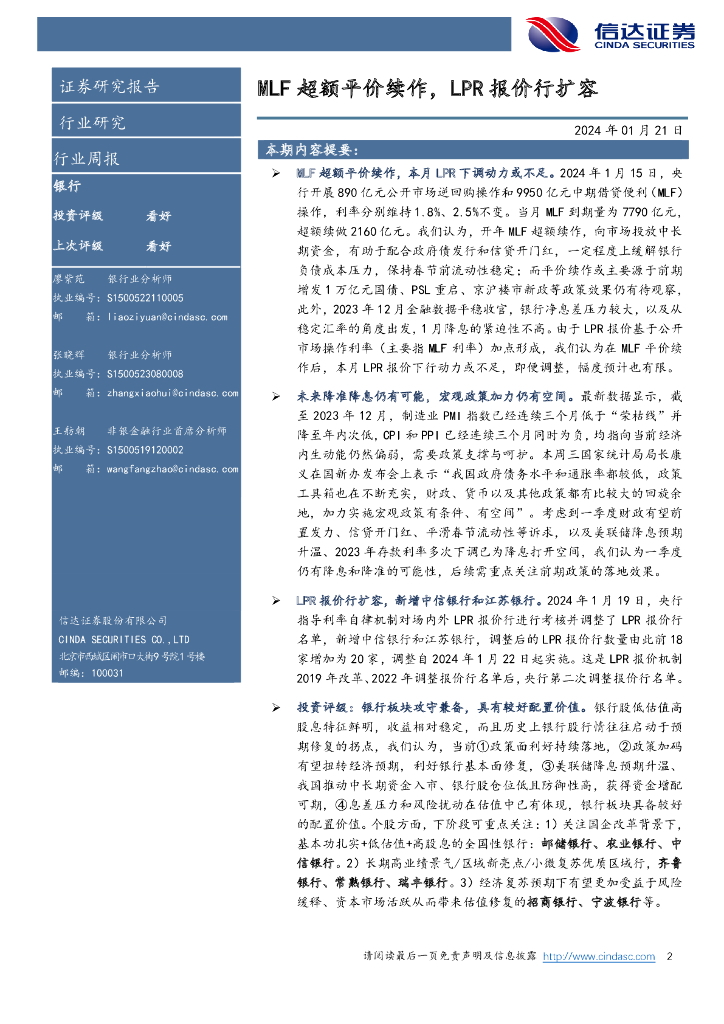 信达证券:银行行业周报:MLF超额平价续作,LPR报价行扩容.pdf