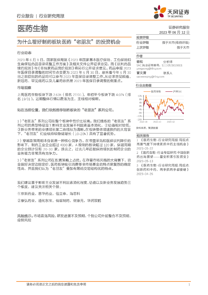 天风证券:医药生物行业研究周报:为什么看好制药板块医药“老朋友”的投资机会.pdf
