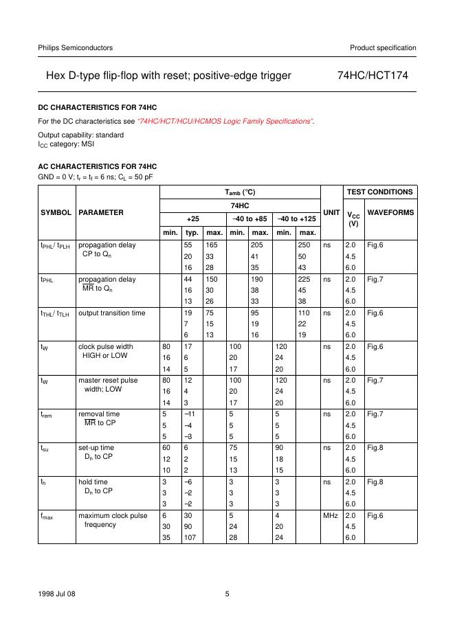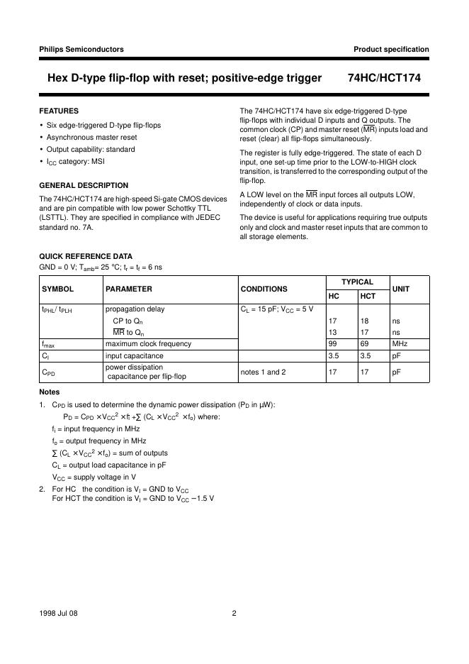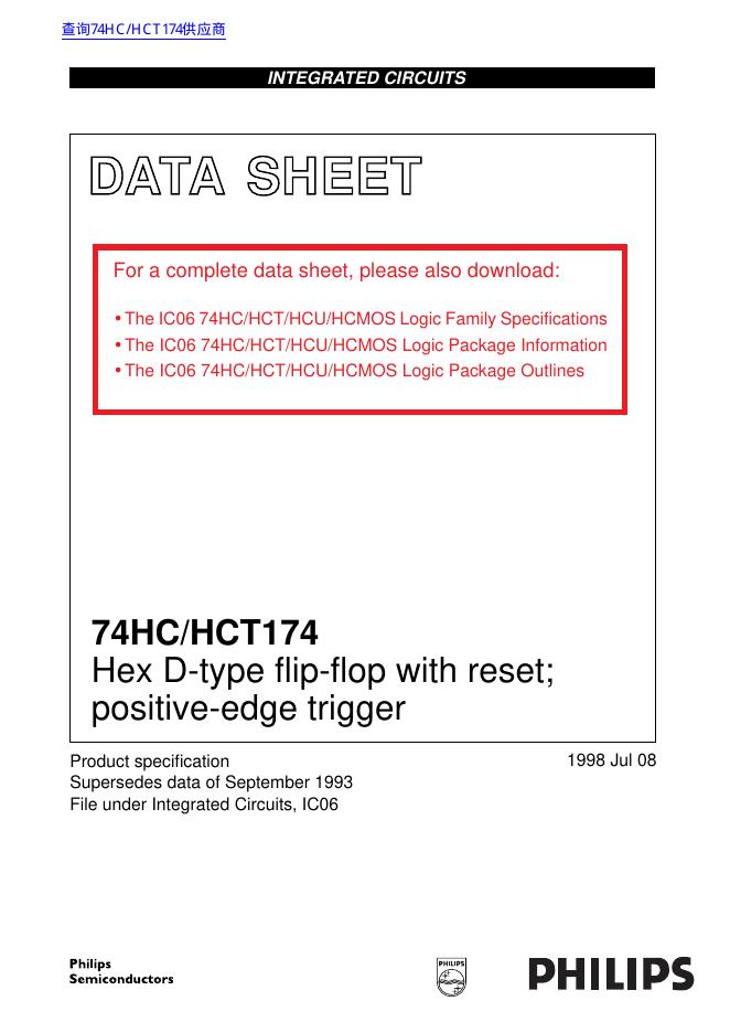 PHILIPS 74HC/HCT174 Hex D-type flip-flop with reset; positive-edge trigger 数据手册.pdf