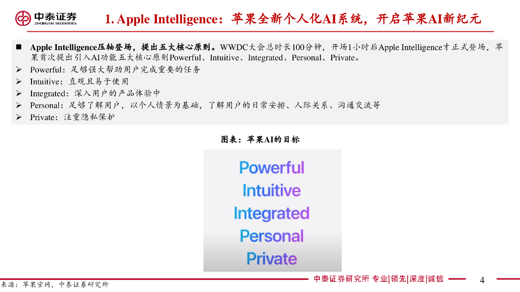 中泰证券:【中泰电子】AI系列之苹果WWDC2024:苹果开启AI新纪元,引入个人化AI系统AppleIntelligence.pdf