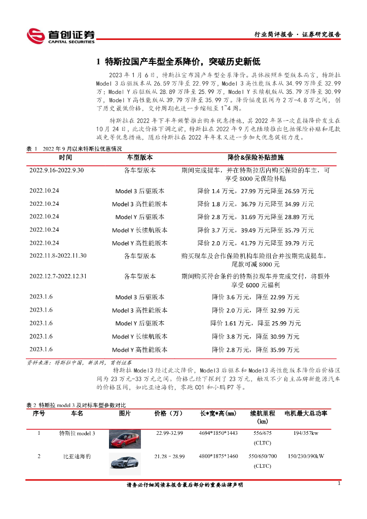 首创证券:汽车行业简评报告:特斯拉全系降价,新能源车市场竞争加剧.pdf