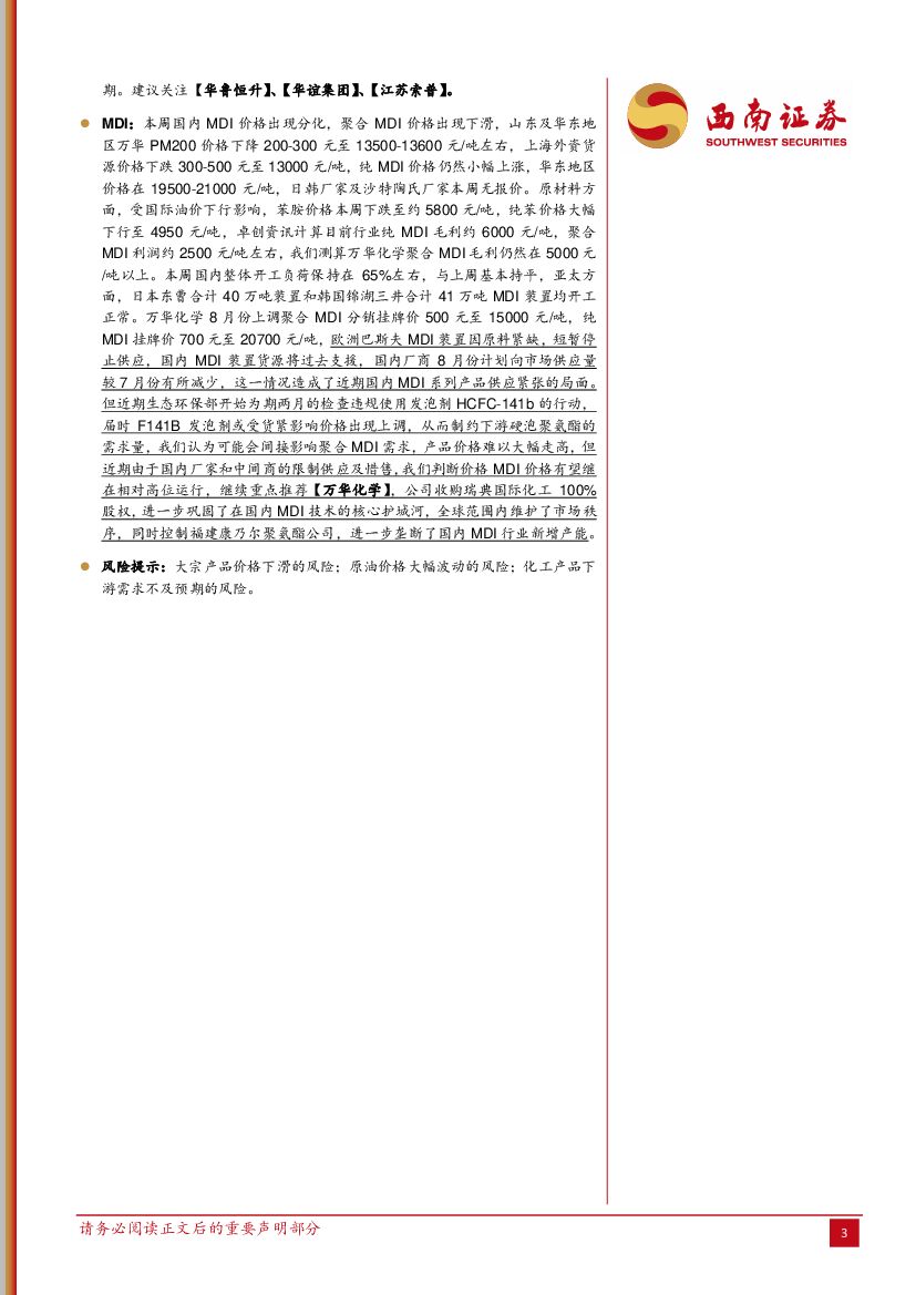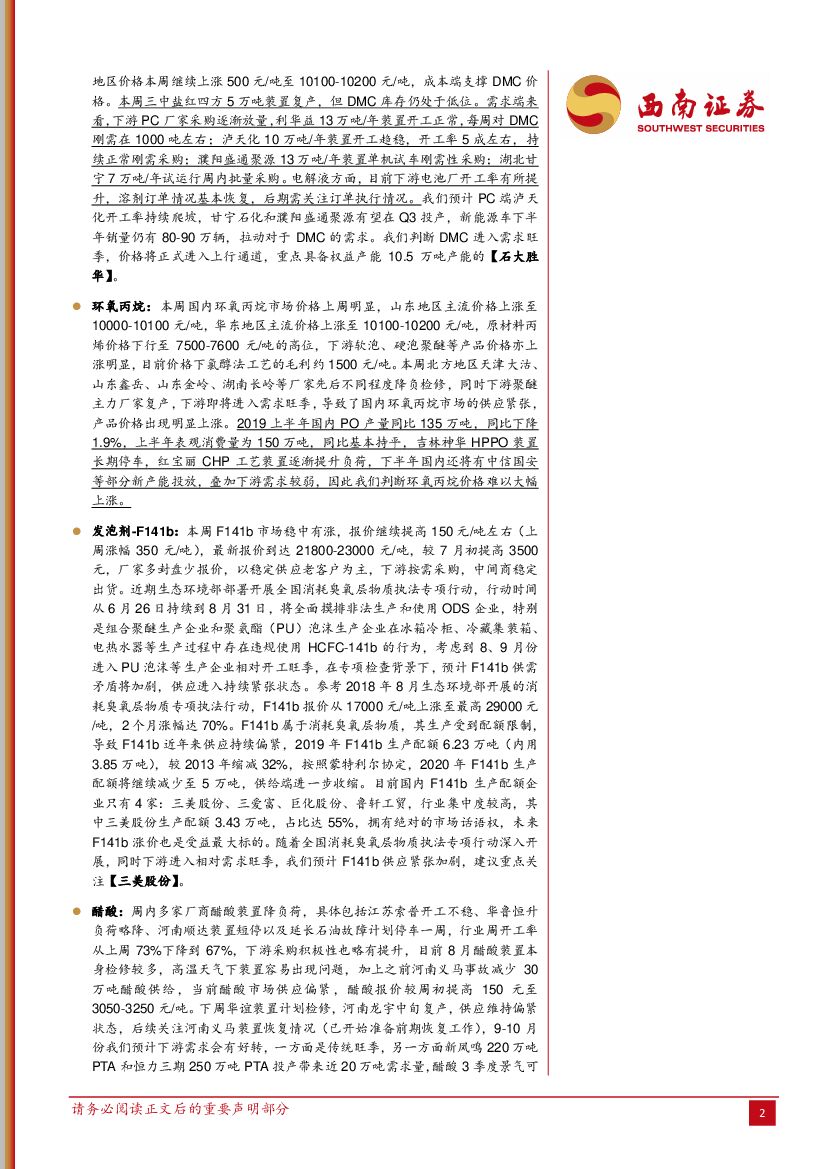西南证券:化工行业周观点:油脂化工品价格上行明显,有机硅产品价格继续上涨.pdf