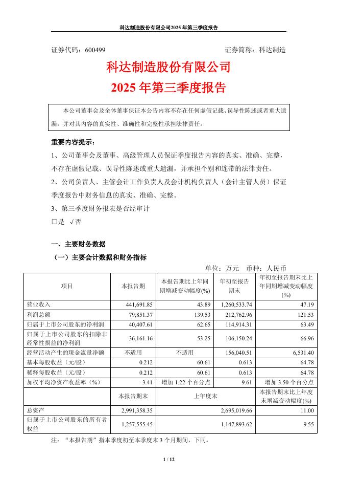 600499-科达制造:科达制造股份有限公司2025年第三季度报告.pdf
