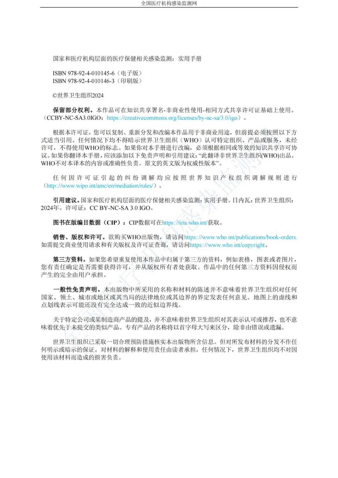 WHO世界卫生组织:2024年国家和医疗机构层面的医疗保健相关感染监测实用手册.pdf