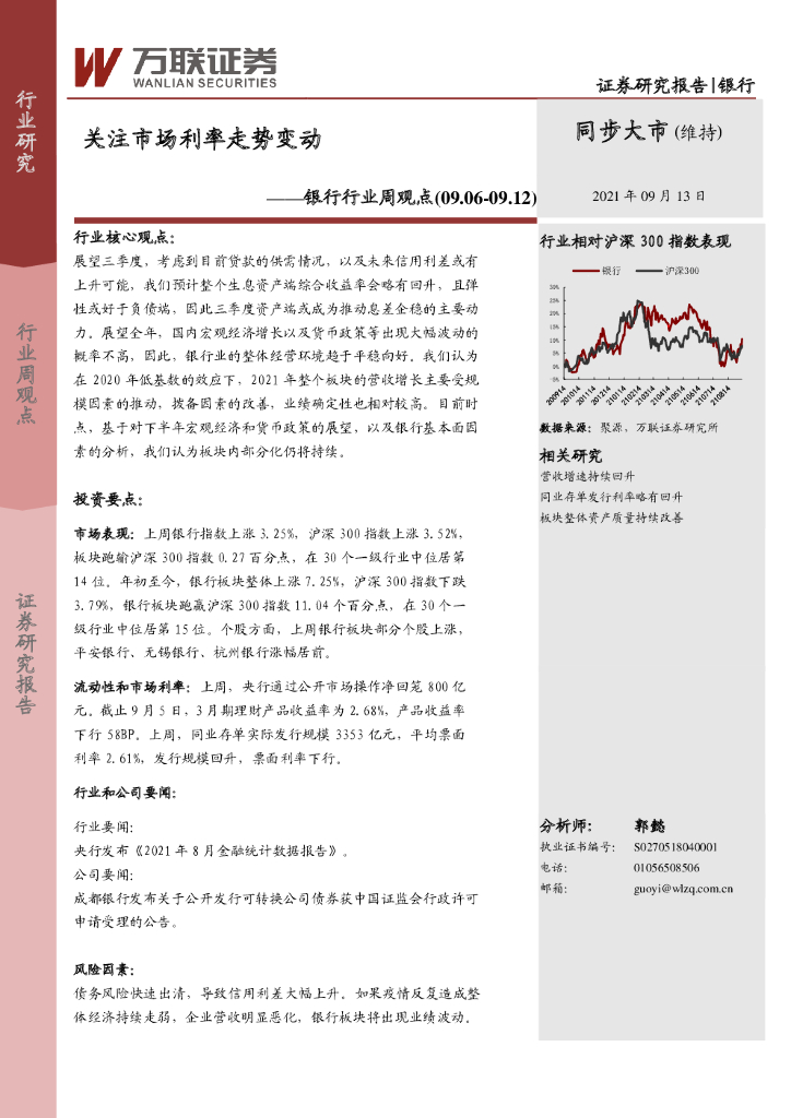 万联证券:银行行业周观点:关注市场利率走势变动.pdf