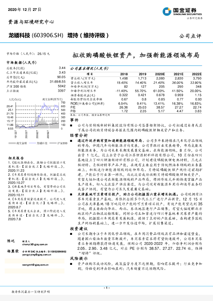 国金证券:龙蟠科技(603906)-拟收购磷酸铁锂资产,加强新能源领域布局.pdf