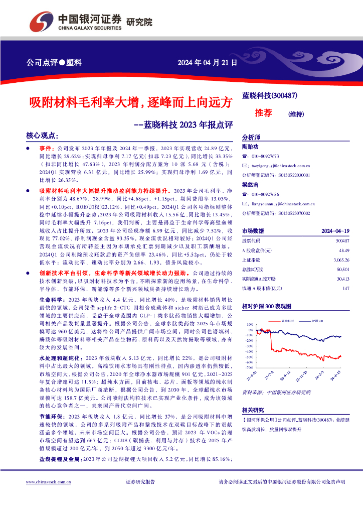 中国银河:蓝晓科技2023年报点评:吸附材料毛利率大增,逐峰而上向远方.pdf