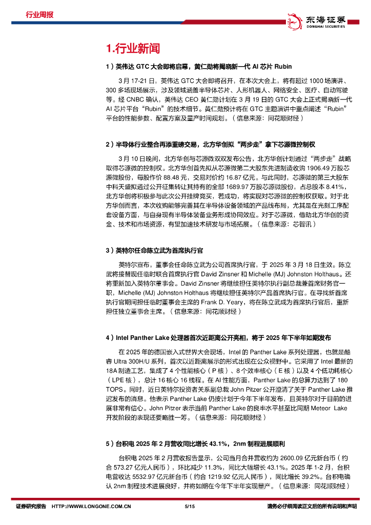 东海证券:电子行业周报:北方华创拟取得芯源微控制权,关注GTC大会带来的AI产业链机遇.pdf