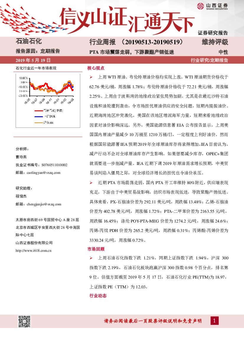山西证券:石油石化行业周报:PTA市场震荡走弱,下游聚酯产销低迷.pdf