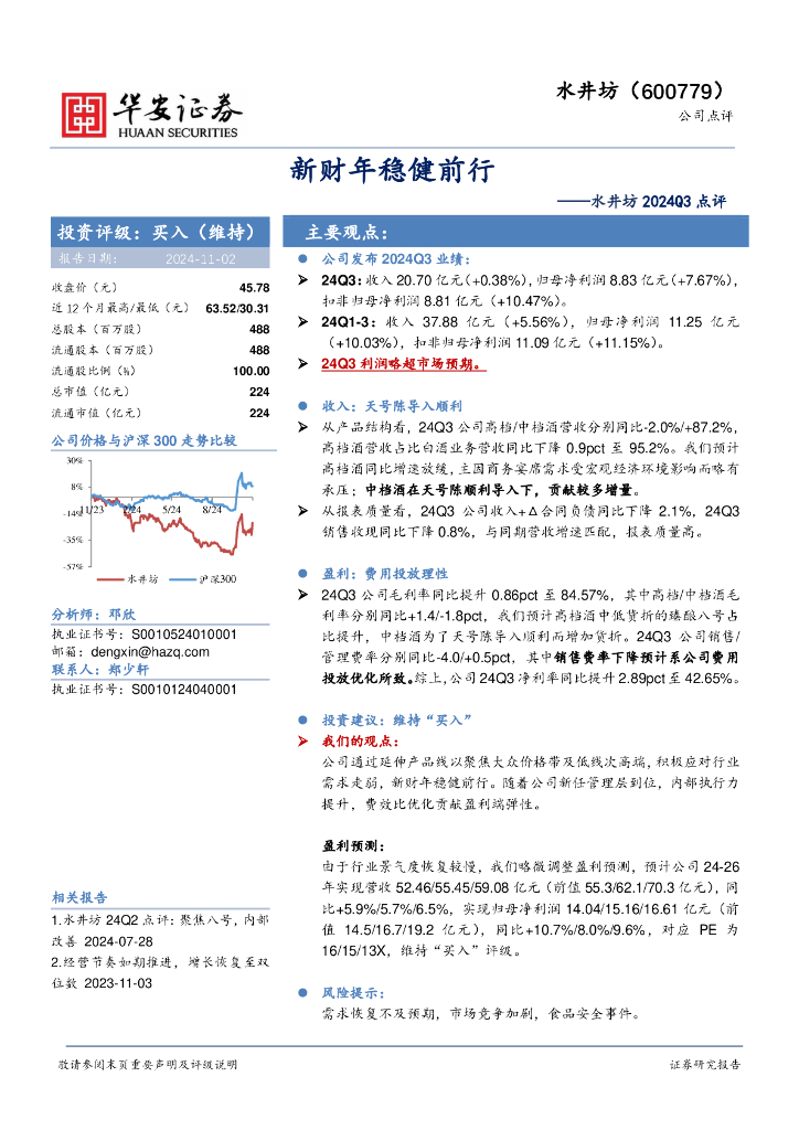 华安证券:水井坊2024Q3点评:新财年稳健前行.pdf