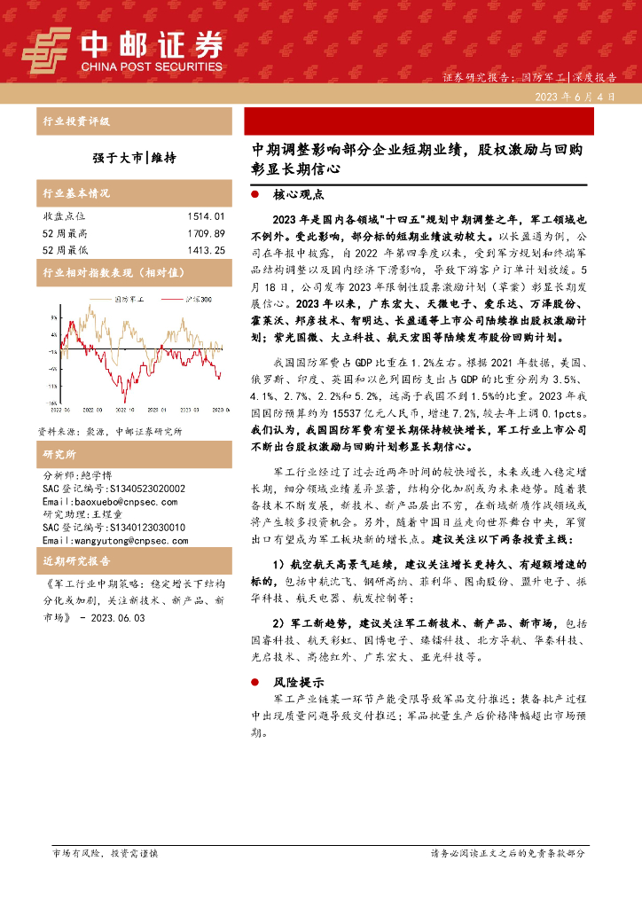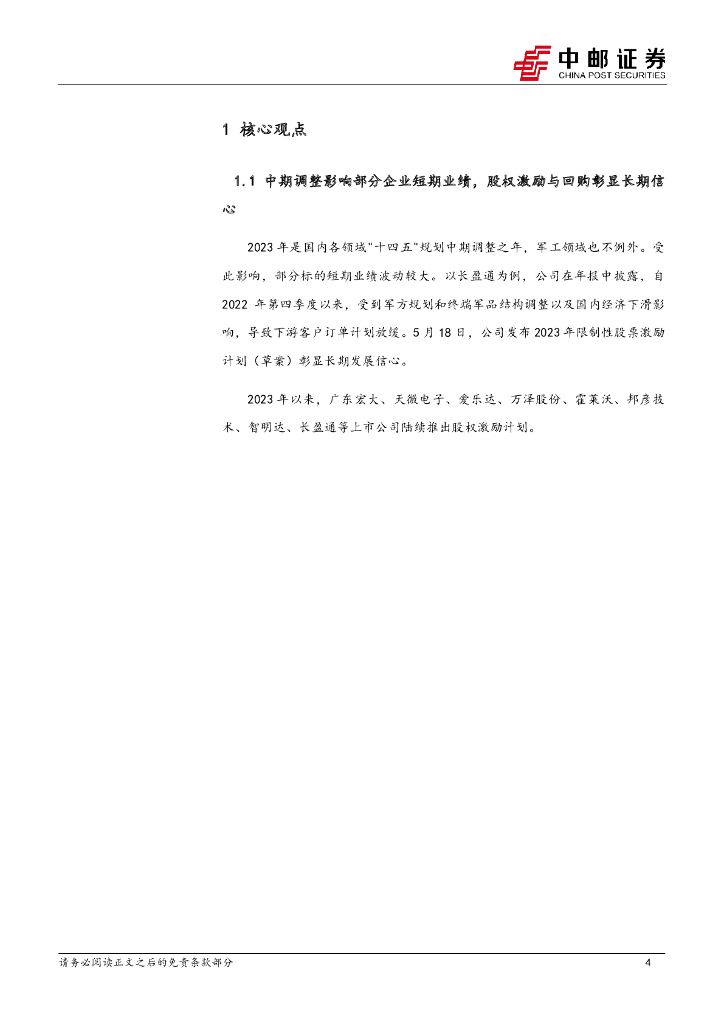 中邮证券:国防军工深度报告:中期调整影响部分企业短期业绩,股权激励与回购彰显长期信心.pdf
