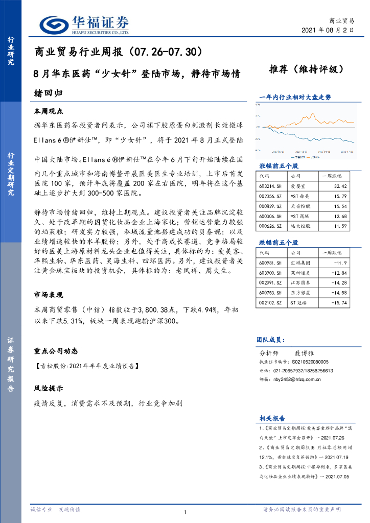 华福证券:商业贸易行业周报:8月华东医药“少女针”登陆市场,静待市场情绪回归.pdf