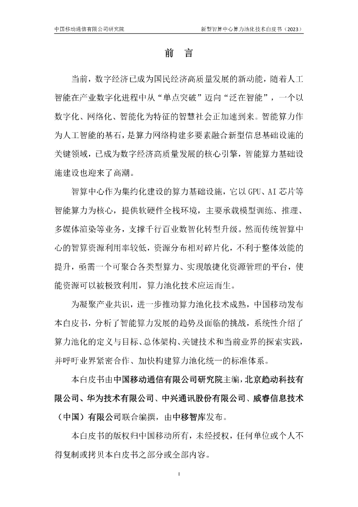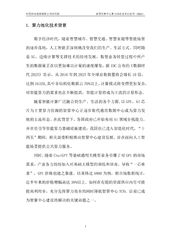 中国移动:2023年NICC新型智算中心算力池化技术白皮书.pdf