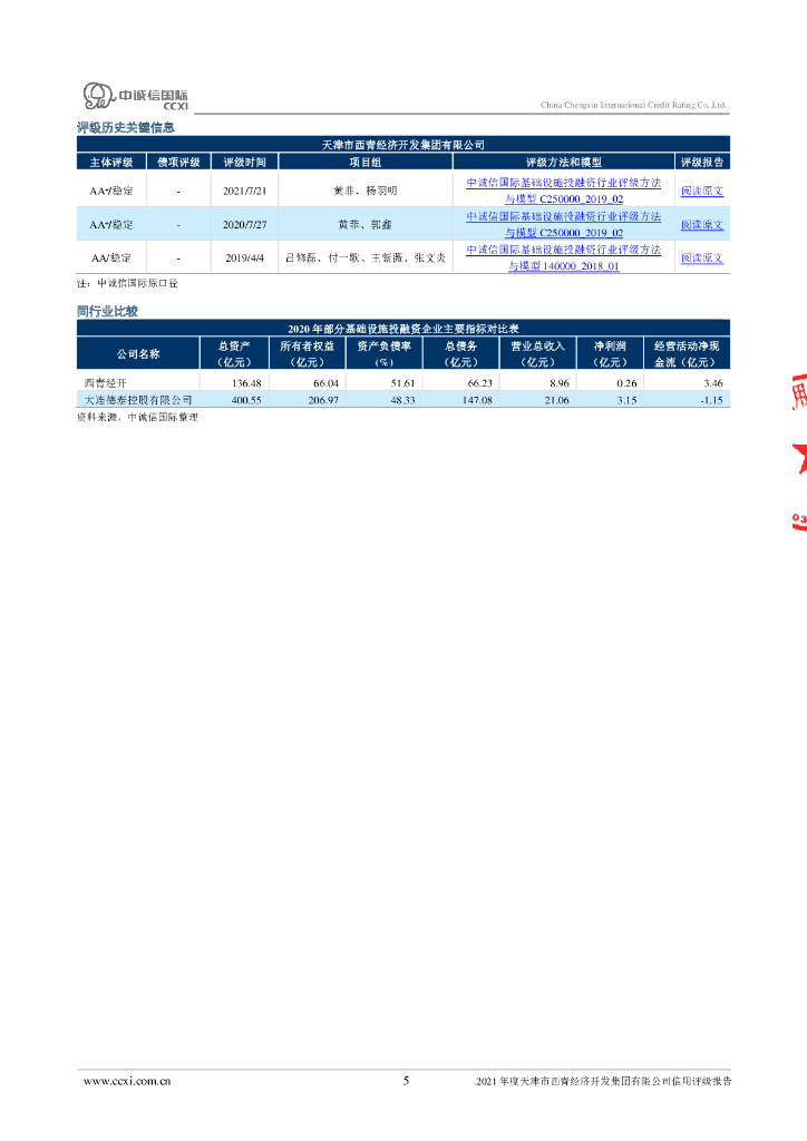 中诚信:2021年度天津市西青经济开发集团有限公司信用评级报告.pdf