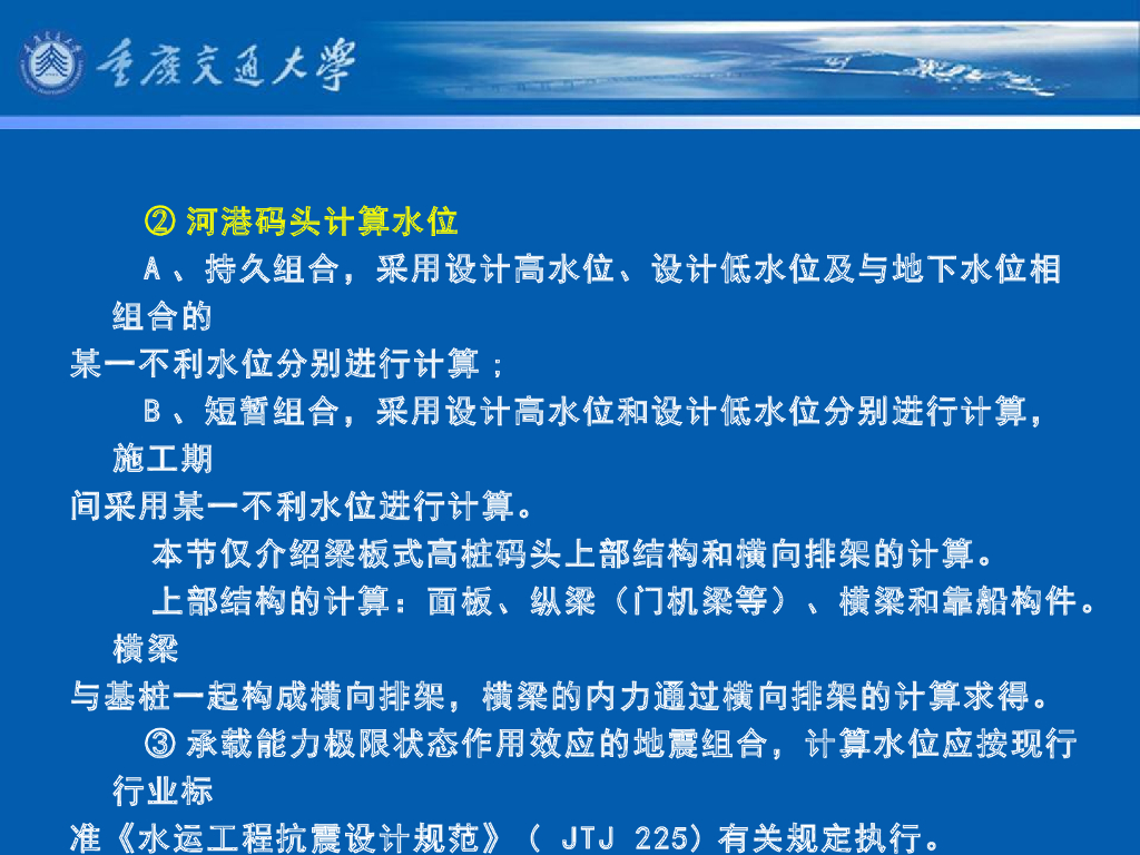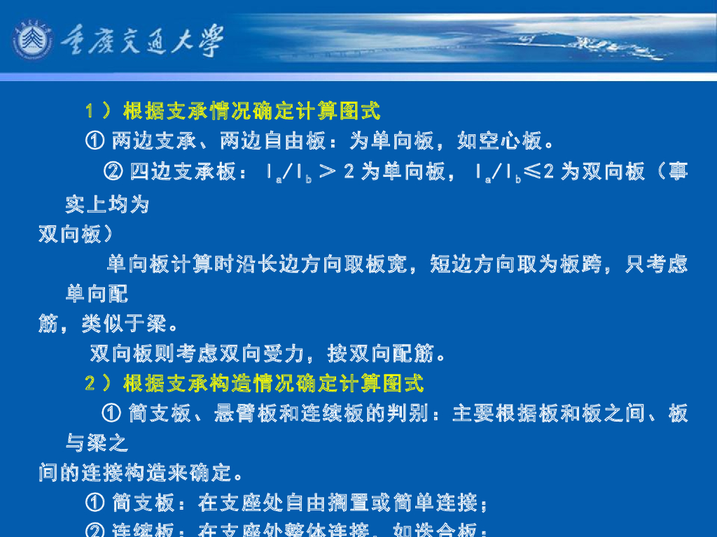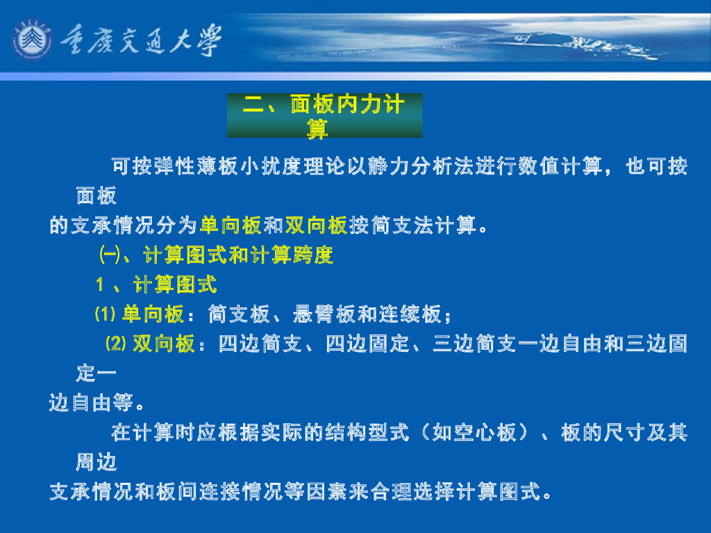 《港口水工建筑物》教学课件-高桩码头上部结构的计算⑴:面板内力计算①:计算图式、计算跨度、传递宽度、弯距计算宽度、剪力计算宽度.pdf