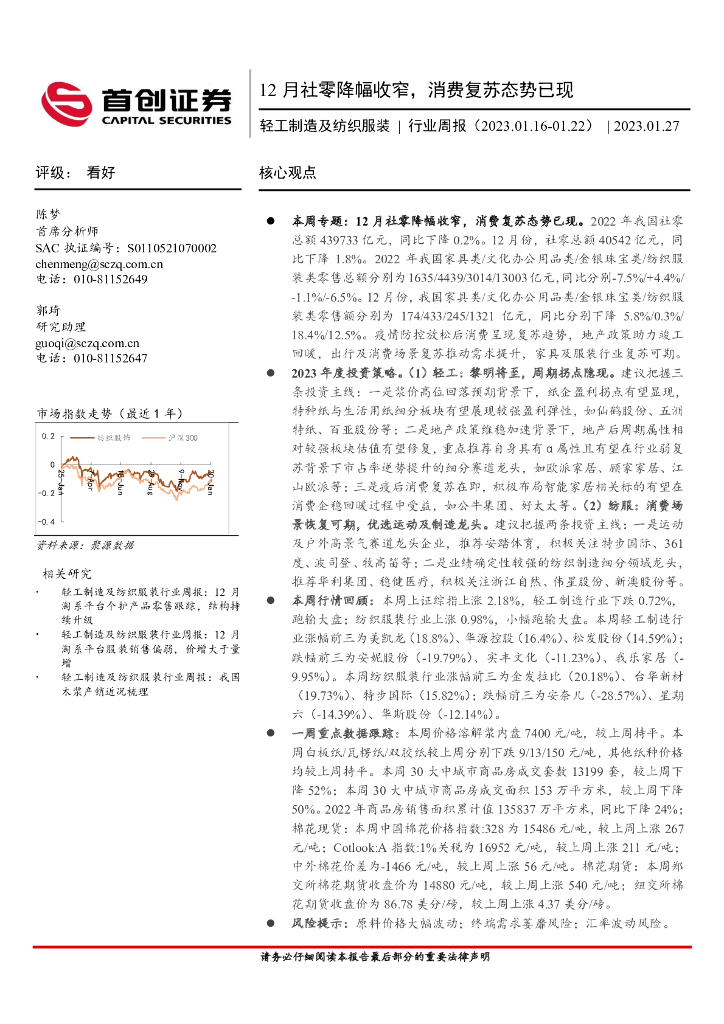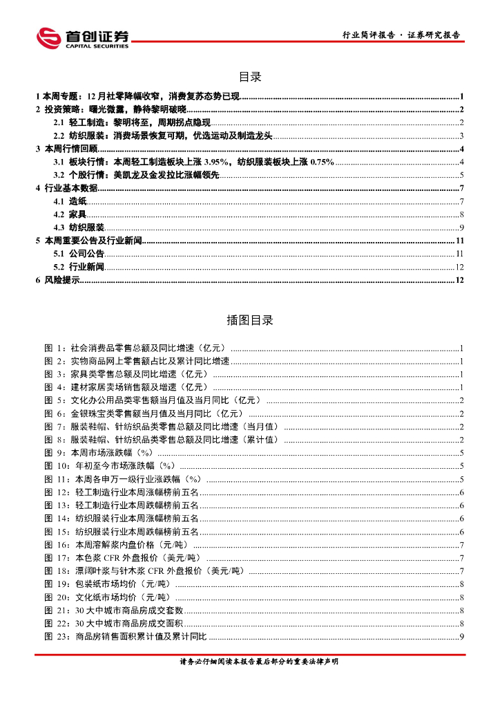 首创证券:轻工制造及纺织服装行业周报:12月社零降幅收窄,消费复苏态势已现.pdf