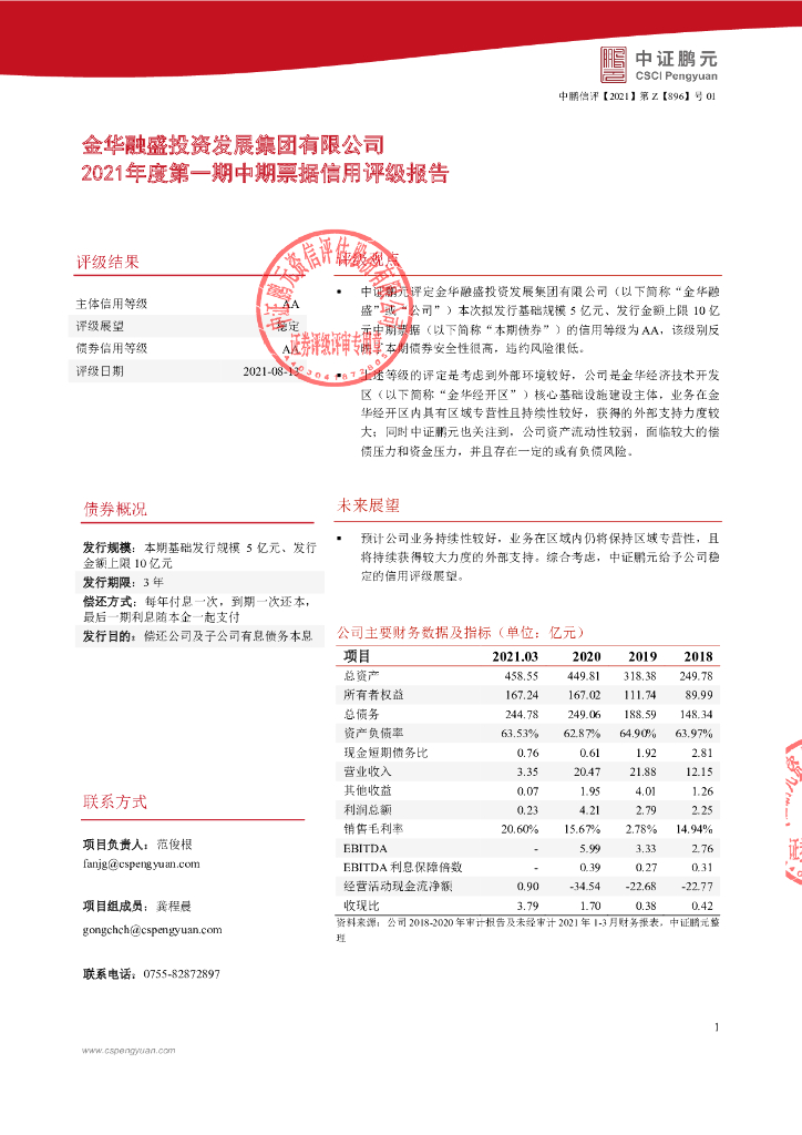 鹏元:发行人主体评级-金华融盛投资发展集团有限公司2021年度第一期中期票据信用评级报告及跟踪评级安排.pdf