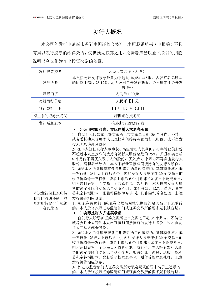 北京利仁科技股份有限公司深交所主板IPO上市招股说明书.pdf
