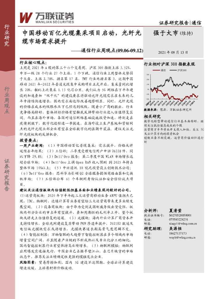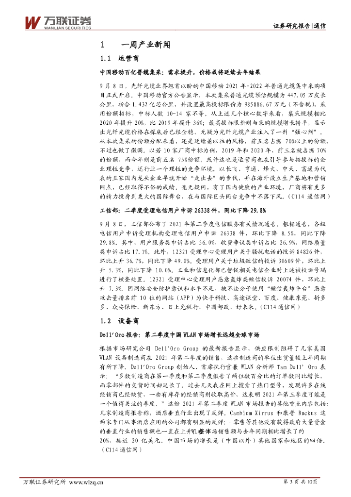 万联证券:通信行业周观点:中国移动百亿光缆集采项目启动,光纤光缆市场需求提升.pdf