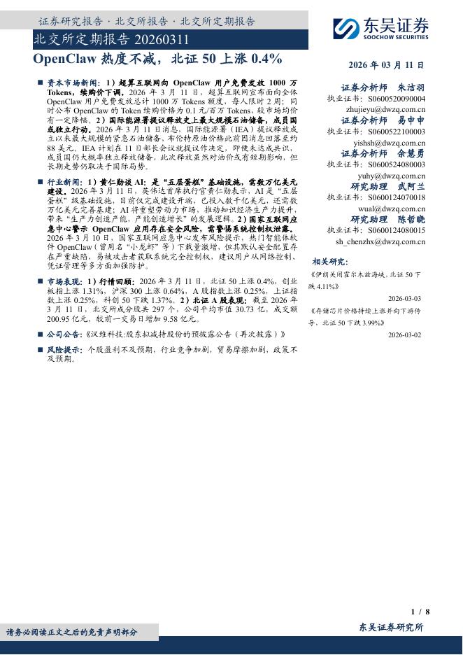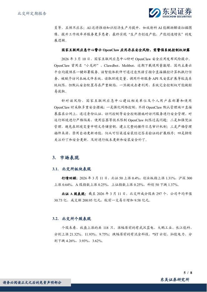 东吴证券:北交所定期报告:OpenClaw热度不减,北证50上涨0.4%-260312.pdf