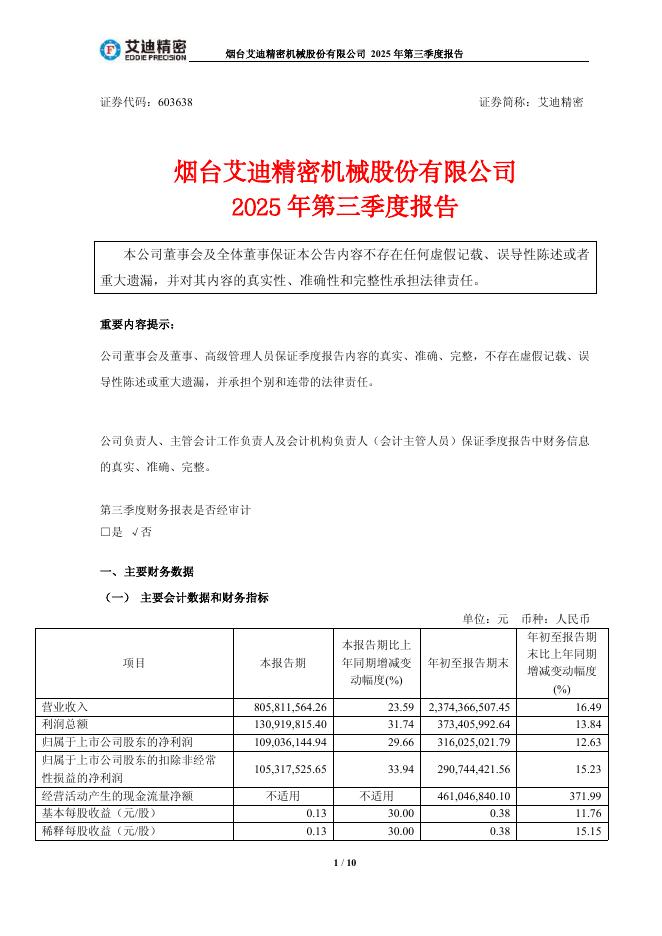 603638-艾迪精密:艾迪精密2025年第三季度报告.pdf
