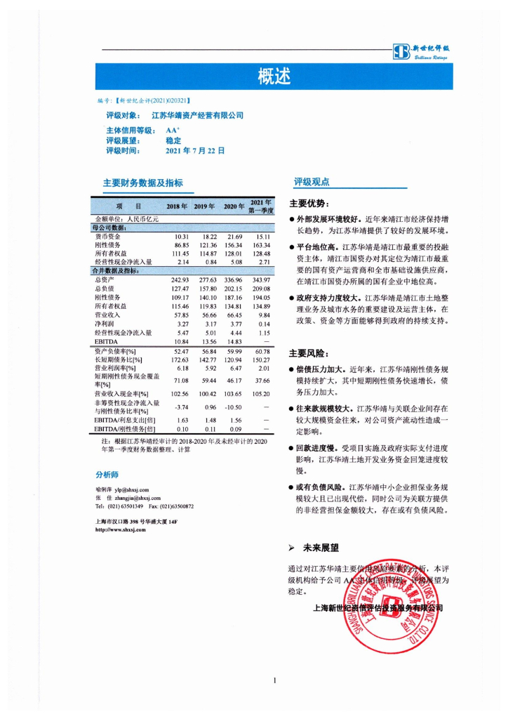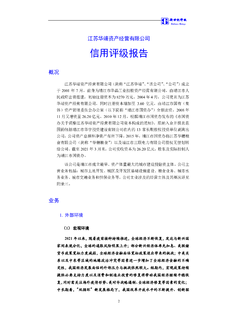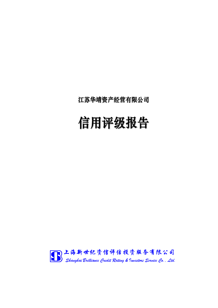新世纪:江苏华靖资产经营有限公司主体信用评级报告.pdf