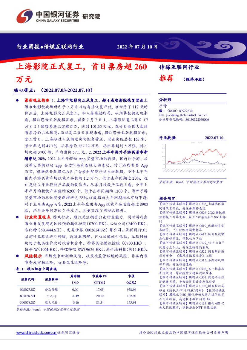 中国银河:传媒互联网行业周报:上海影院正式复工,首日票房超260万元.pdf