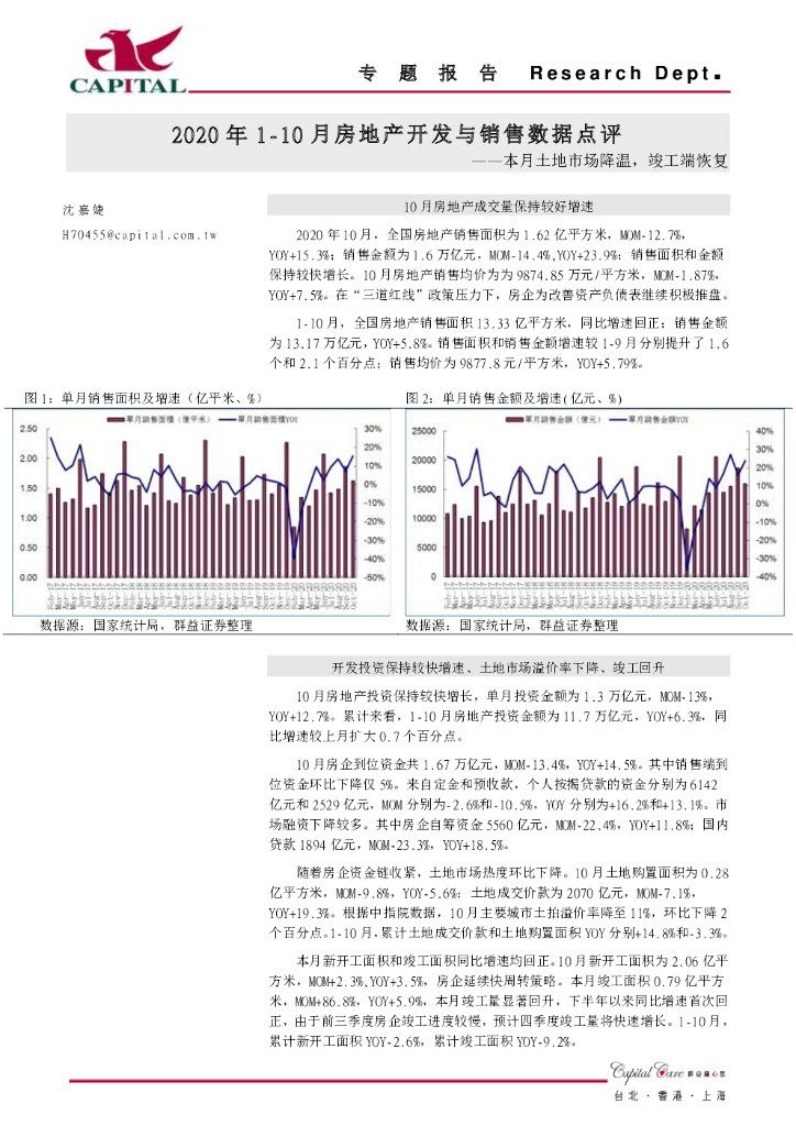 群益证券:2020年1-10月房地产开发与销售数据点评:本月土地市场降温,竣工端恢复.pdf