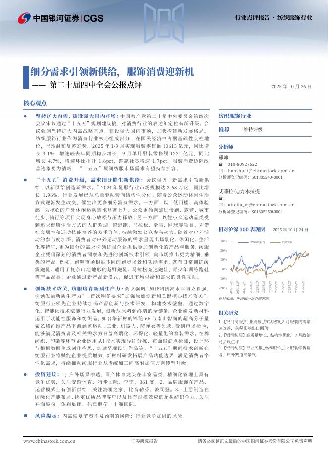 中国银河:纺织服饰行业第二十届四中全会公报点评:细分需求引领新供给,服饰消费迎新机.pdf