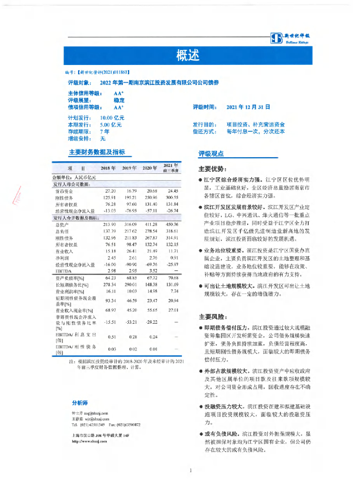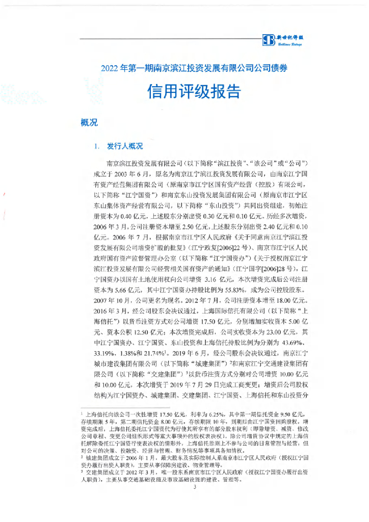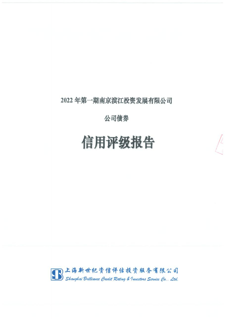 新世纪:2022年第一期南京滨江投资发展有限公司公司债券信用评级报告.pdf