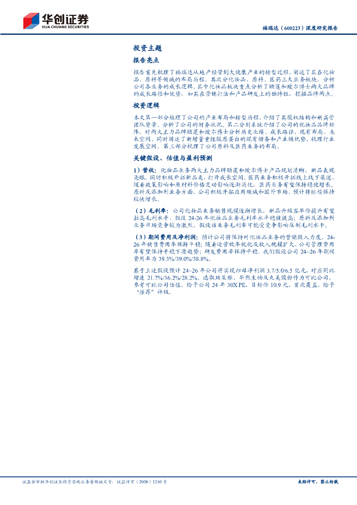 华创证券:福瑞达(600223)深度研究报告:顺利转型聚焦大健康产业,业务协同全面加码.pdf