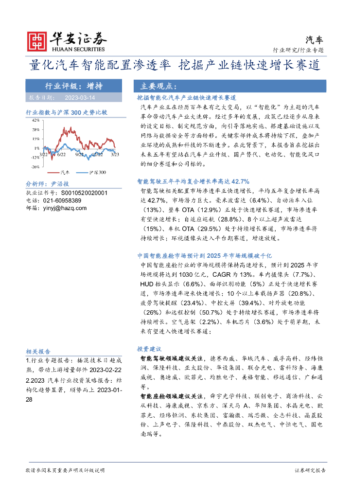 华安证券:汽车行业专题:量化汽车智能配置渗透率 挖掘产业链快速增长赛道.pdf