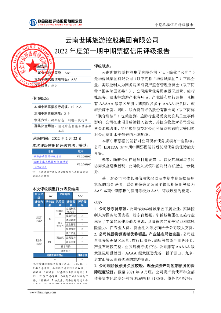 联合资信:云南世博旅游控股集团有限公司2022年度第一期中期票据信用评级报告.pdf